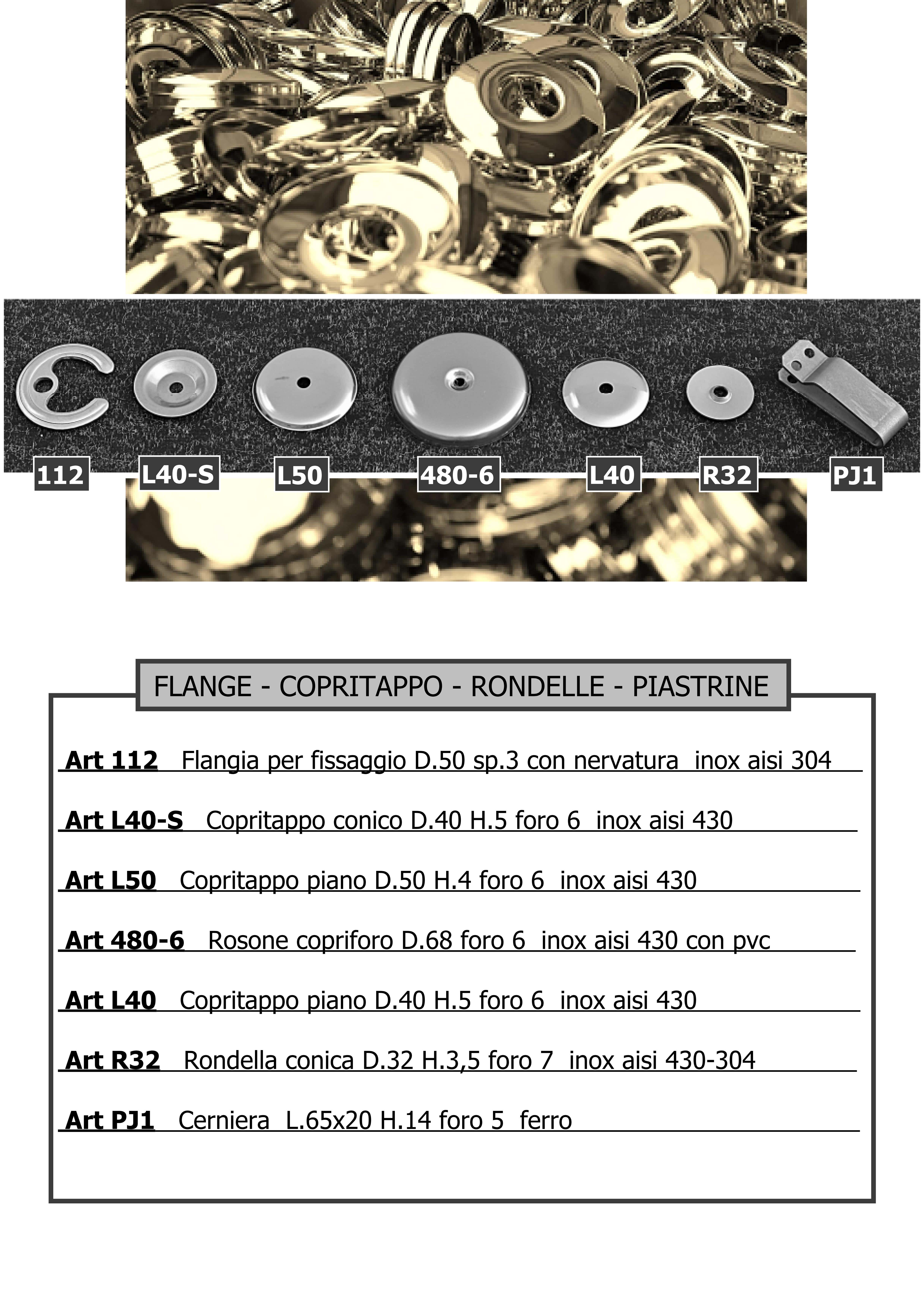 La nostra produzione viene realizzata mediante la tranciatura ed imbutitura a freddo di nastri in lamiera di acciaio inox aisi 304 e aisi 430, ottone OT63, con spessori che variano da 0,4 mm a 3,0 mm.